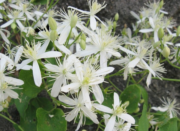 仙人草は、まるで夏の終わりを告げるようにして立秋の頃から咲きはじめる花ですが、今年は暑さのせいか開花が遅れたようです。仙人草はキンポウゲ科のツル草で、日当たりのよい雑木林の入口なんかによく見られ、周りの雑木にもたれるように咲くのが特徴です。